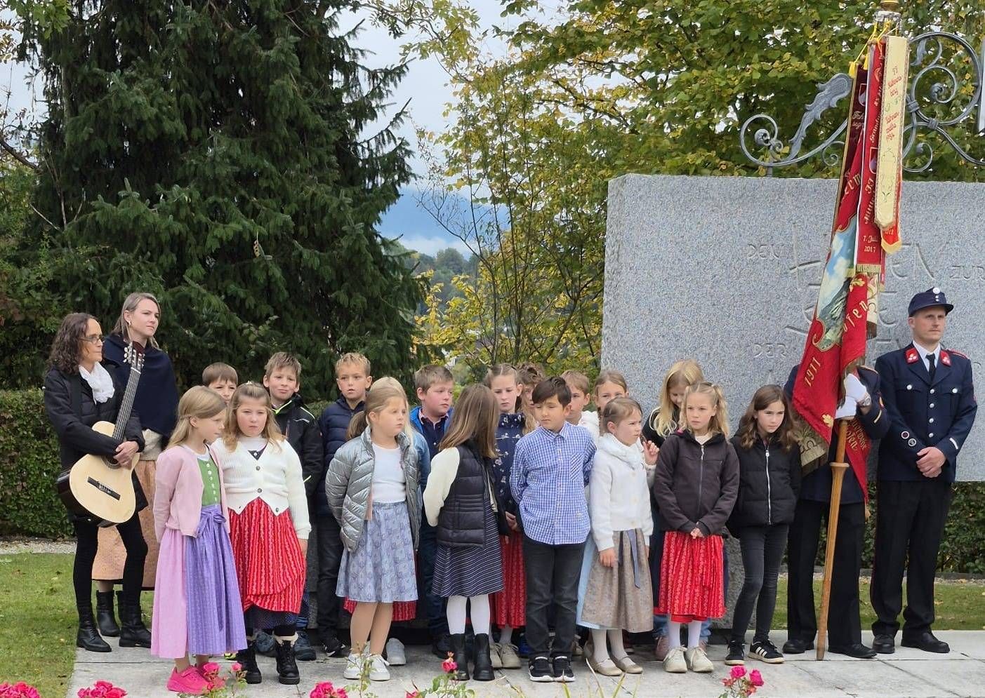 Jedes Jahr nimmt eine Abordnung unserer Schule am Heldengedenken vor dem Kriegerdenkmal in Lieserhofen teil. Die Direktorin der VS Lieserhofen Frau Evelyn Wernitznig-Steiner, Frau Sandra Reiterer und Frau Ruth Unterkofler begleiteten die Schüler*innen, die aus der zweiten, dritten und vierten Klasse stammen, von der Volksschule in einem Festzug bis zum Denkmal gegenüber dem Kindergarten. Dort nahmen die Kinder Aufstellung und trugen ein Lied und ein Gedicht vor. Im Anschluss an diese traditionelle Veranstaltung lud die Lieserhofer Bauernschaft zum geselligen Zusammensein ein.