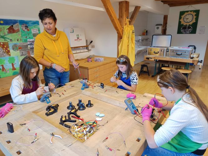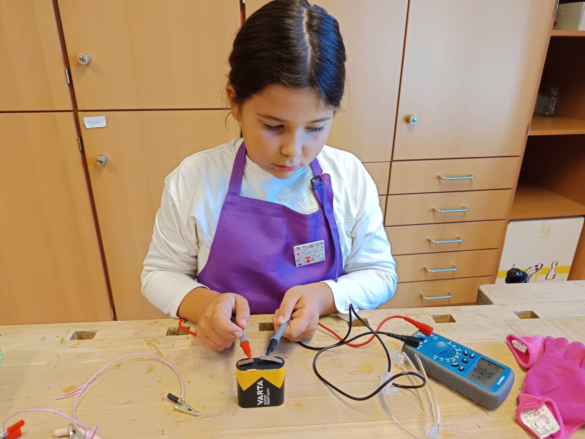 Ganz nach dem Motto „Ausprobieren ist der erste Schritt zum Entdecken“ konnten die Mädchen der 4. Klassen gleich nach den Herbstferien die Welt des Stroms entdecken. Unter fachkundiger Anleitung von Frau Mayer erzeugte und maßen sie Elektrizität, experimentierten mit Magneten und Drähten und brachten Dinge zum Leuchten. Die Möglichkeit, technische Handwerksarbeit auf spielerische Weise zu erforschen machte den Mädels sichtlich Spaß.
