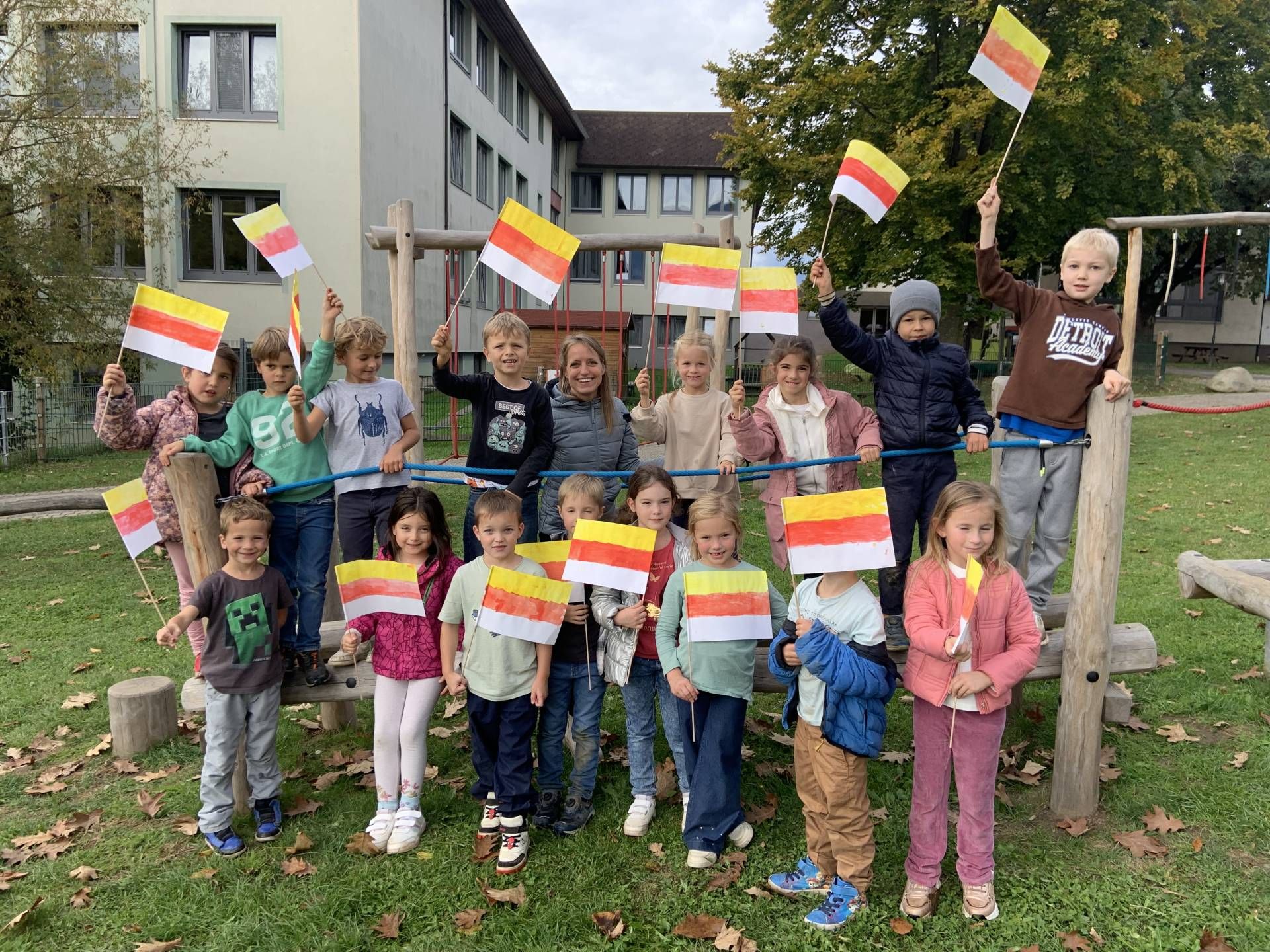 Mit viel Freude und Kreativität basteln unsere Erstklässler Fahnen zum 10. Oktober.
