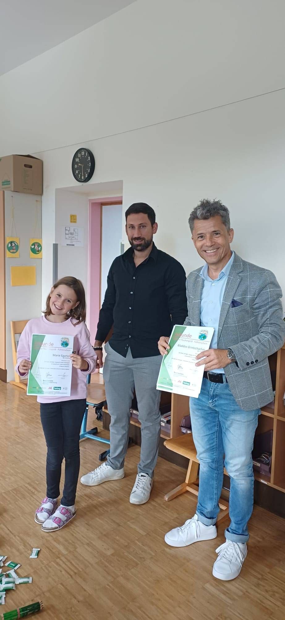 Die Schülerinnen und Schüler der 4. Klassen der Volksschule Seeboden absolvierten heute am 8.10.2025 den Taschengeld-Führerschein. Gemeinsam mit der Schuldnerberatung Kärnten lernten sie spielerisch den richtigen Umgang mit Geld. In verschiedenen Stationen wurde besprochen, woher Geld kommt, wie man vernünftig damit umgeht und wie Sparen gelingt. Besonders spannend fanden die Kinder den Unterschied zwischen Wünschen und Bedürfnissen sowie kleine Rechenübungen zum Taschengeld. Am Ende erhielten alle stolz ihren Taschengeld-Führerschein – ein Schritt in Richtung verantwortungsvoller Umgang mit Geld.