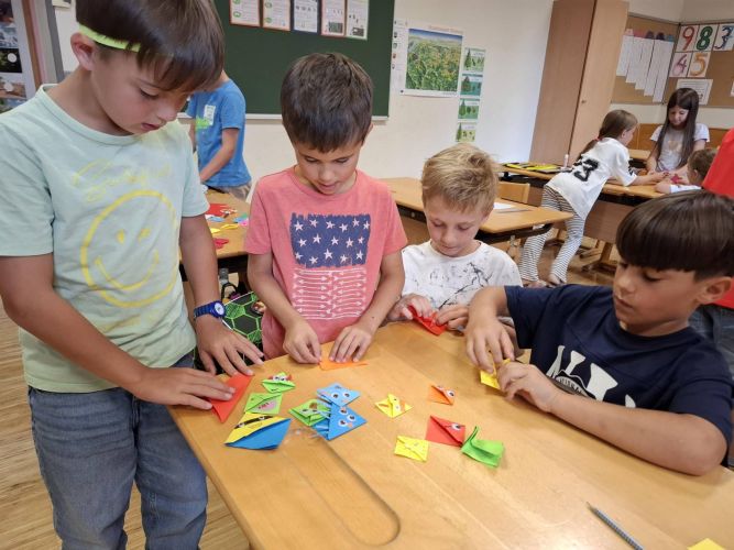 Die Schülerinnen und Schüler der 2. Klassen bastelten gemeinsam bunte Lesezeichen.