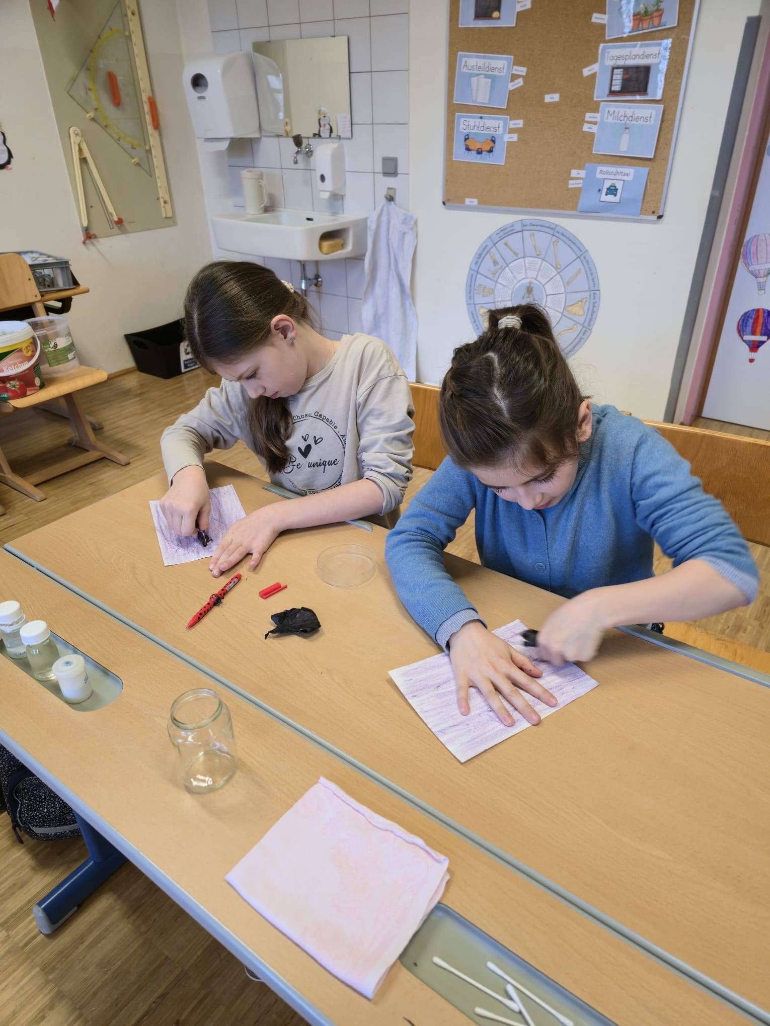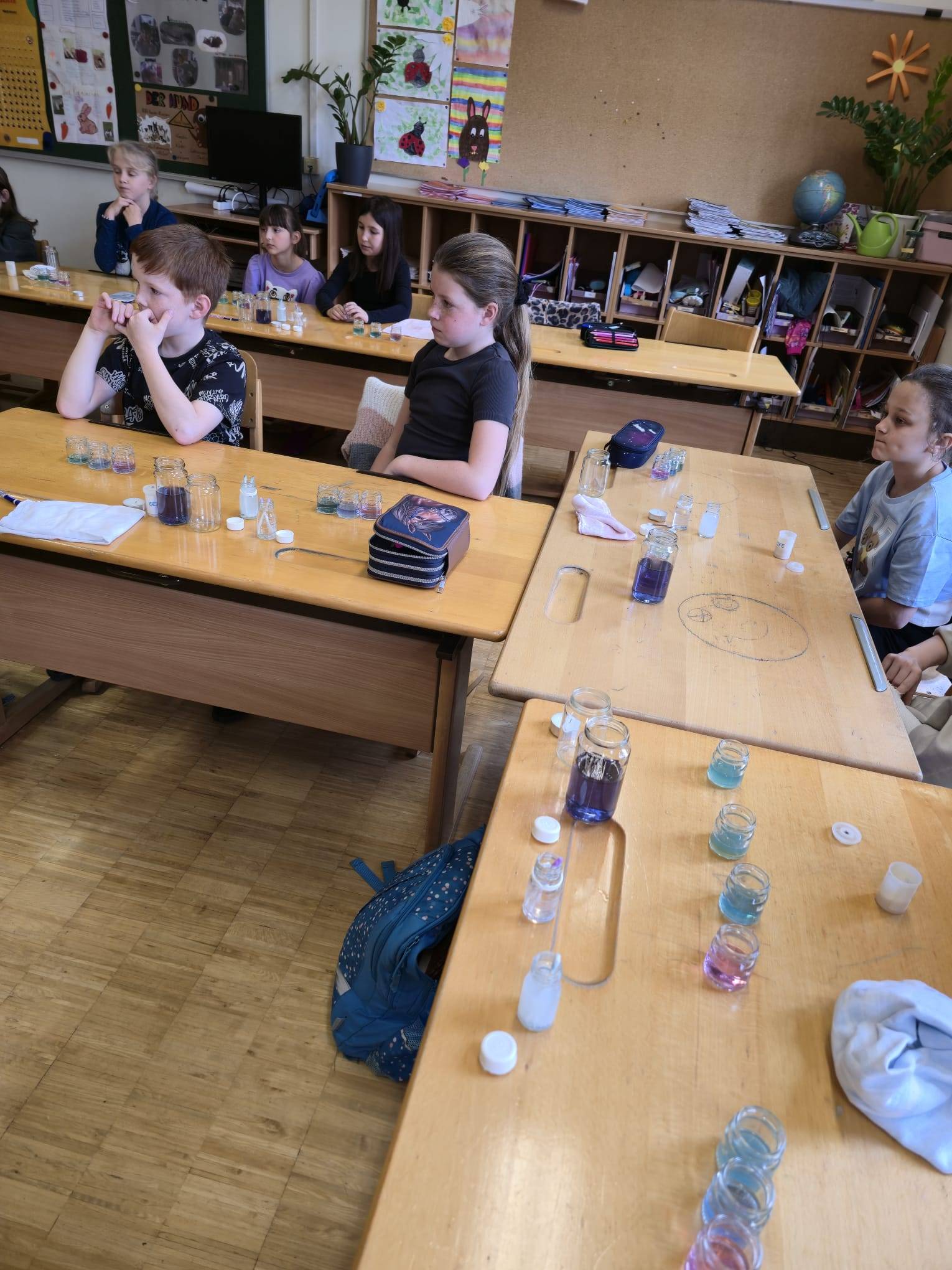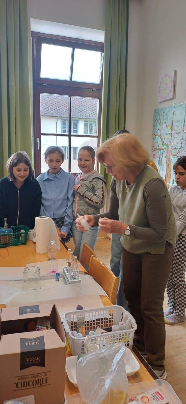 Mit großer Neugier und viel Begeisterung wurde beobachtet, gemischt und ausprobiert. Die Kinder lernten dabei auf spielerische Weise, wie faszinierend chemische Reaktionen sein können. Farben wechselten, Stoffe reagierten miteinander und immer wieder sorgten überraschende Effekte für staunende Gesichter.