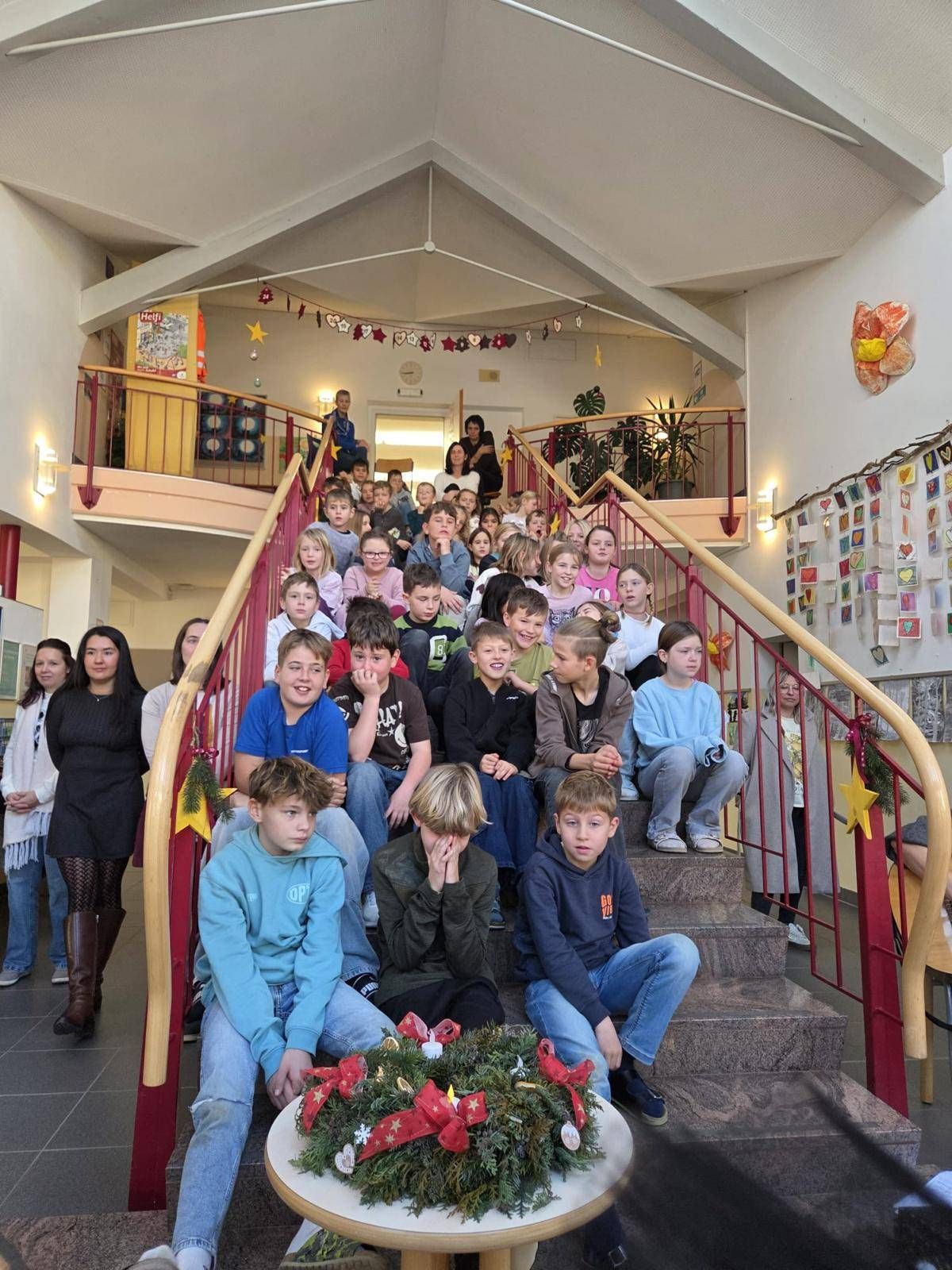 Heute fand unsere gemeinsame Adventfeier statt, die von den Kindern der 2. Klasse liebevoll vorbereitet und gestaltet wurde. Nach gemeinschaftlichem Singen eines Adventliedes, das für eine besinnliche und fröhliche Stimmung sorgte, zeigten die Kinder der 2. Klasse bei ihrer Klanggeschichte und einem wunderschönen Lied zum Thema „Kerzen“, ihr musikalisches Talent.