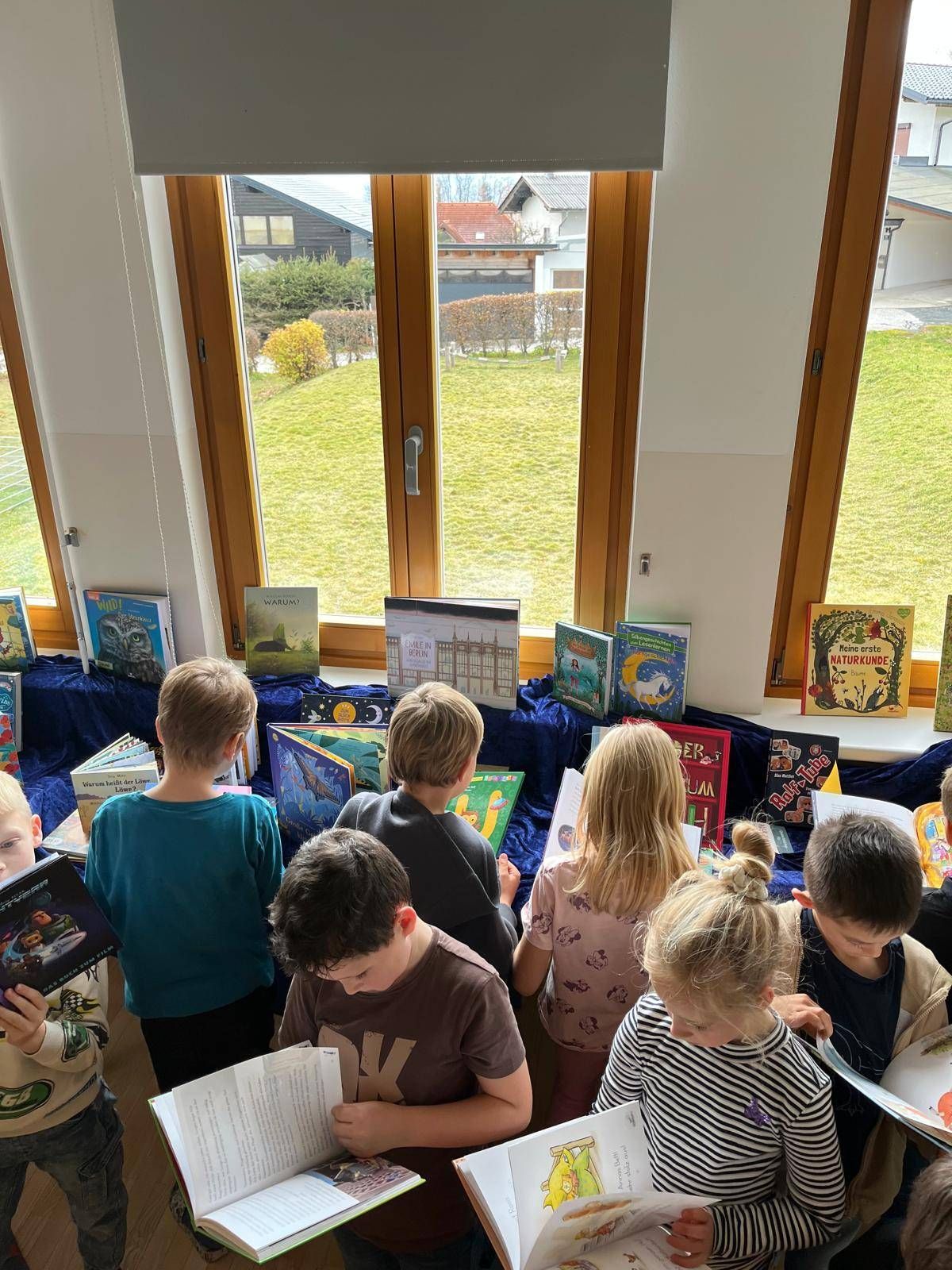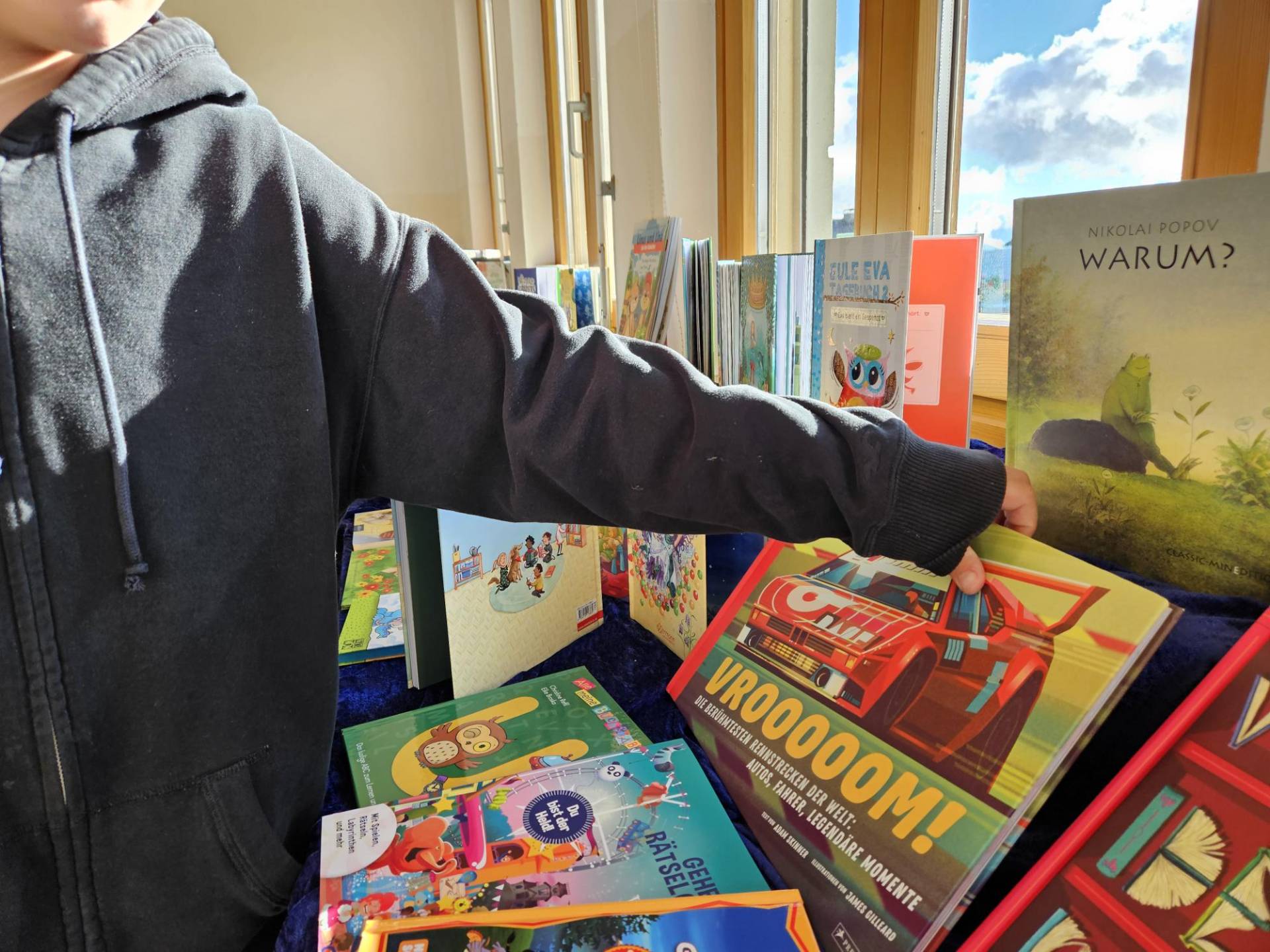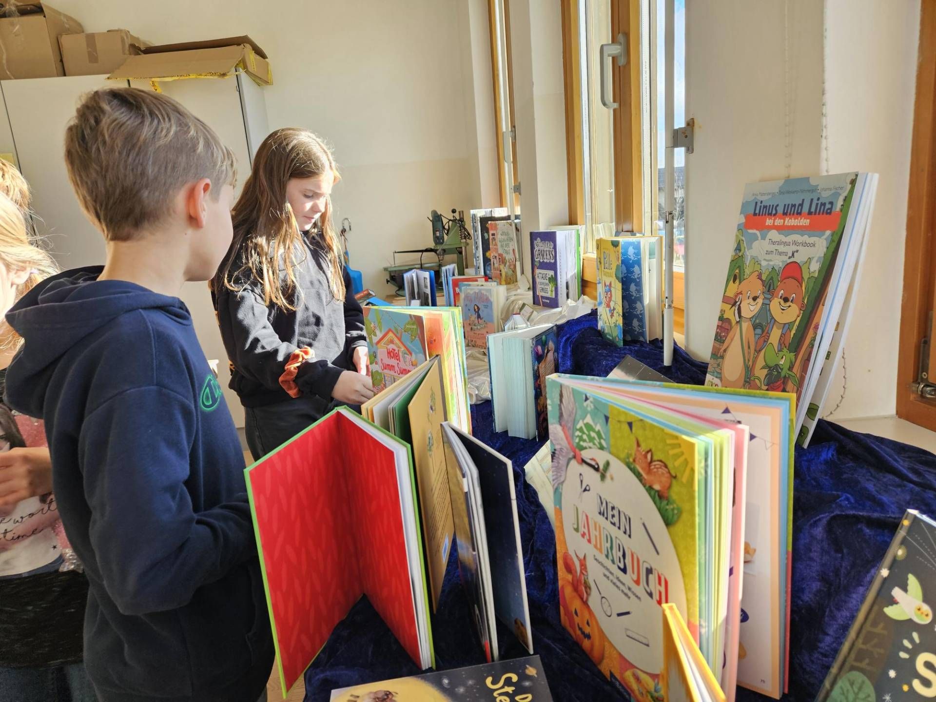 In unserem Schulhaus ist derzeit zum zweiten Mal die Buchausstellung „Lesewelten“ aufgebaut – wie schon im vergangenen Jahr findet sie eine Woche vor dem Sprechtag statt. Unsere Schülerinnen und Schüler stöbern täglich in den bunt gemischten Büchern, entdecken spannende Geschichten, Sachbücher und Bilderbücher und tauschen sich über ihre Leseerlebnisse aus.