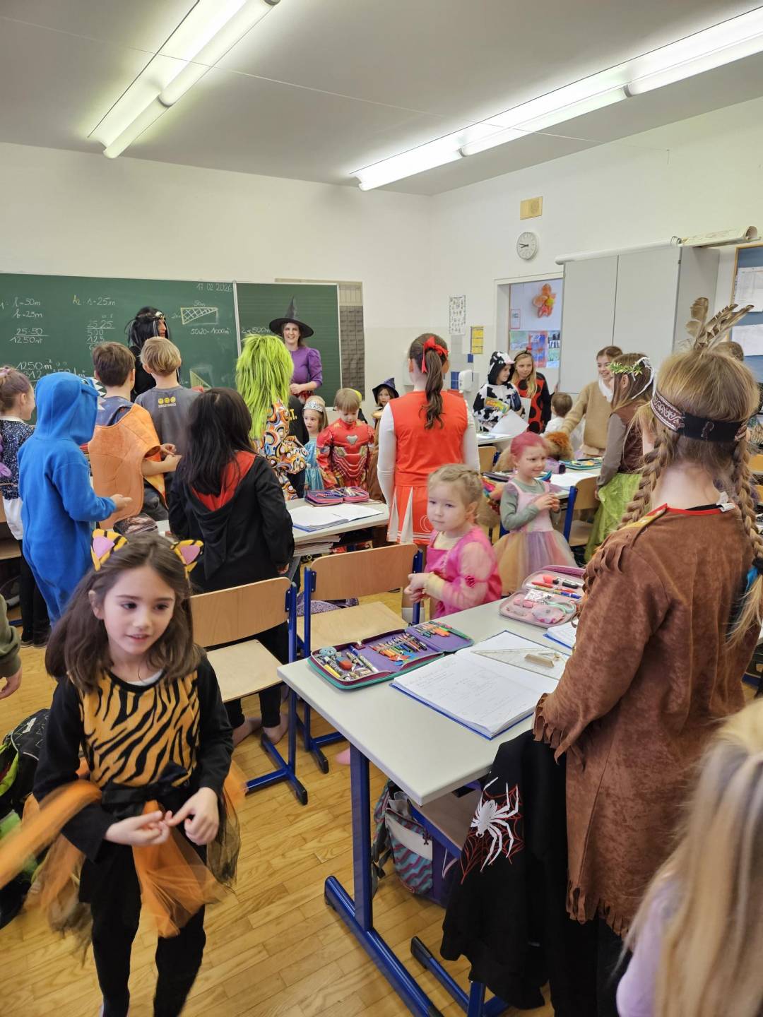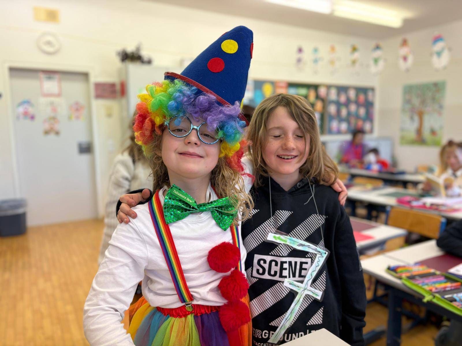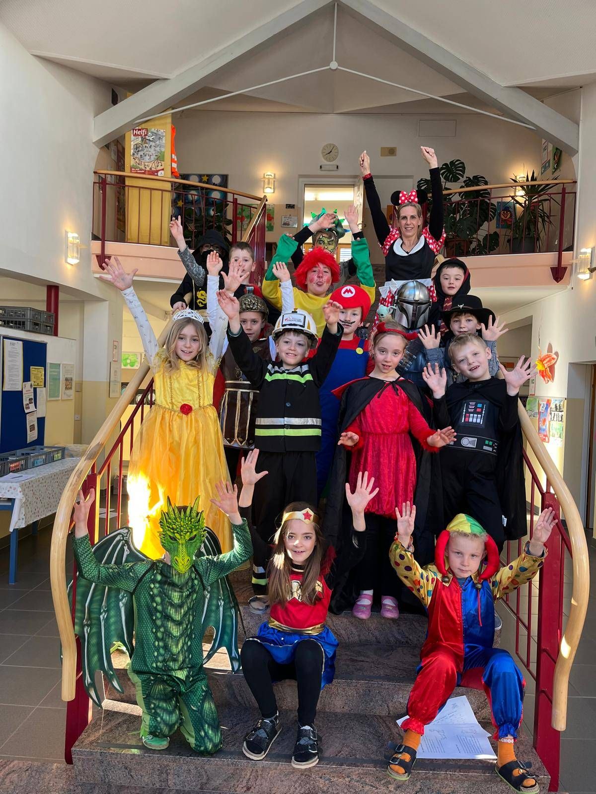 Auch die Kindergartenkinder statteten allen Klassen einen fröhlichen Besuch ab. Gemeinsam wurde das „Gute-Laune-Lied“ gesungen und getanzt – ein riesiger Spaß für Groß und Klein!