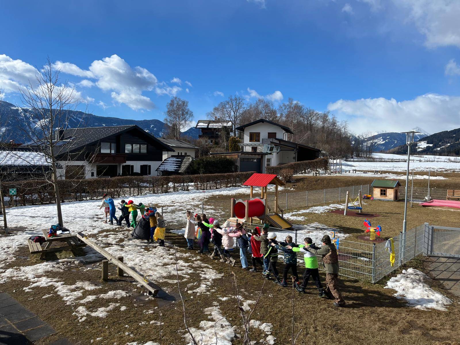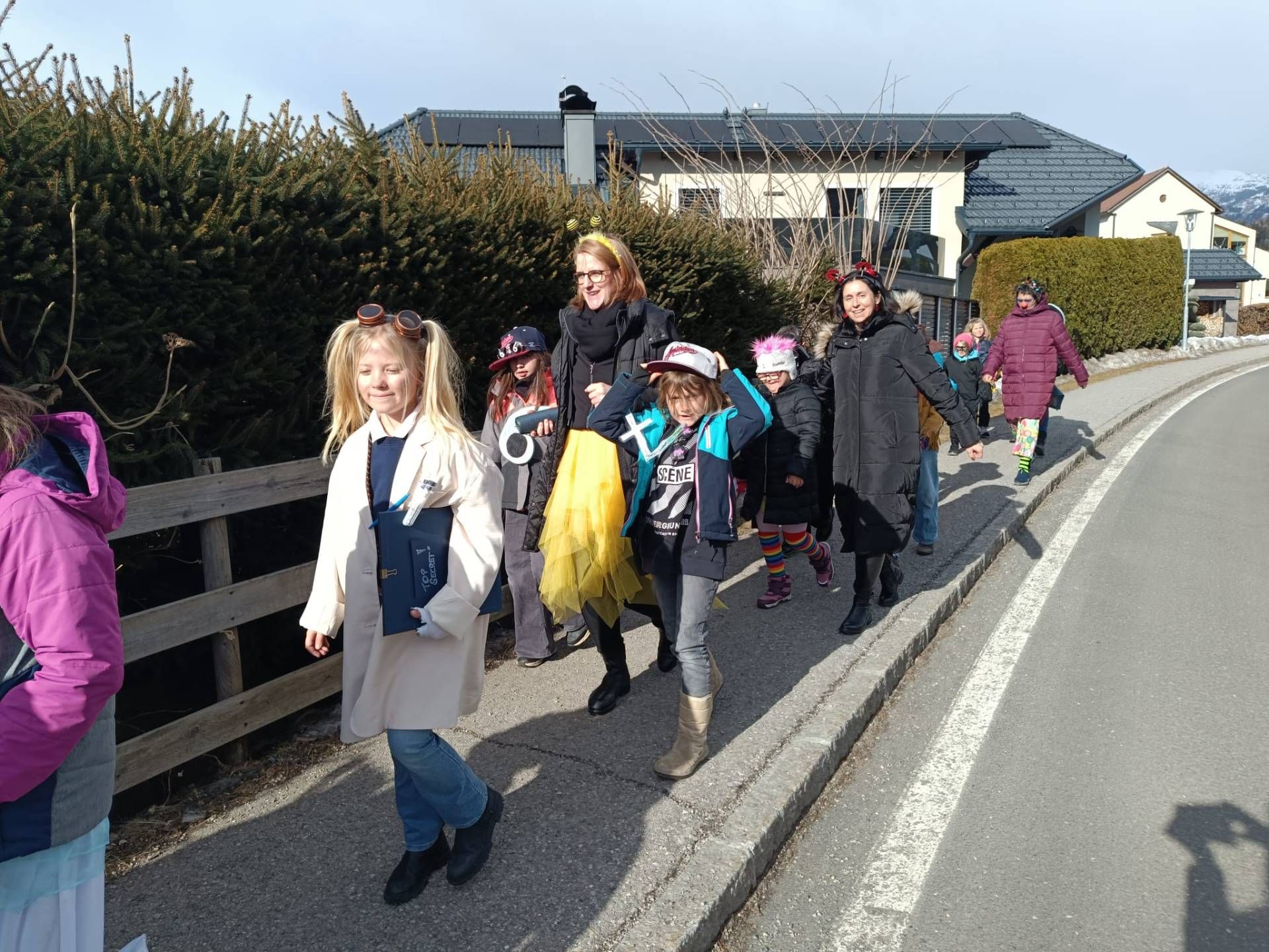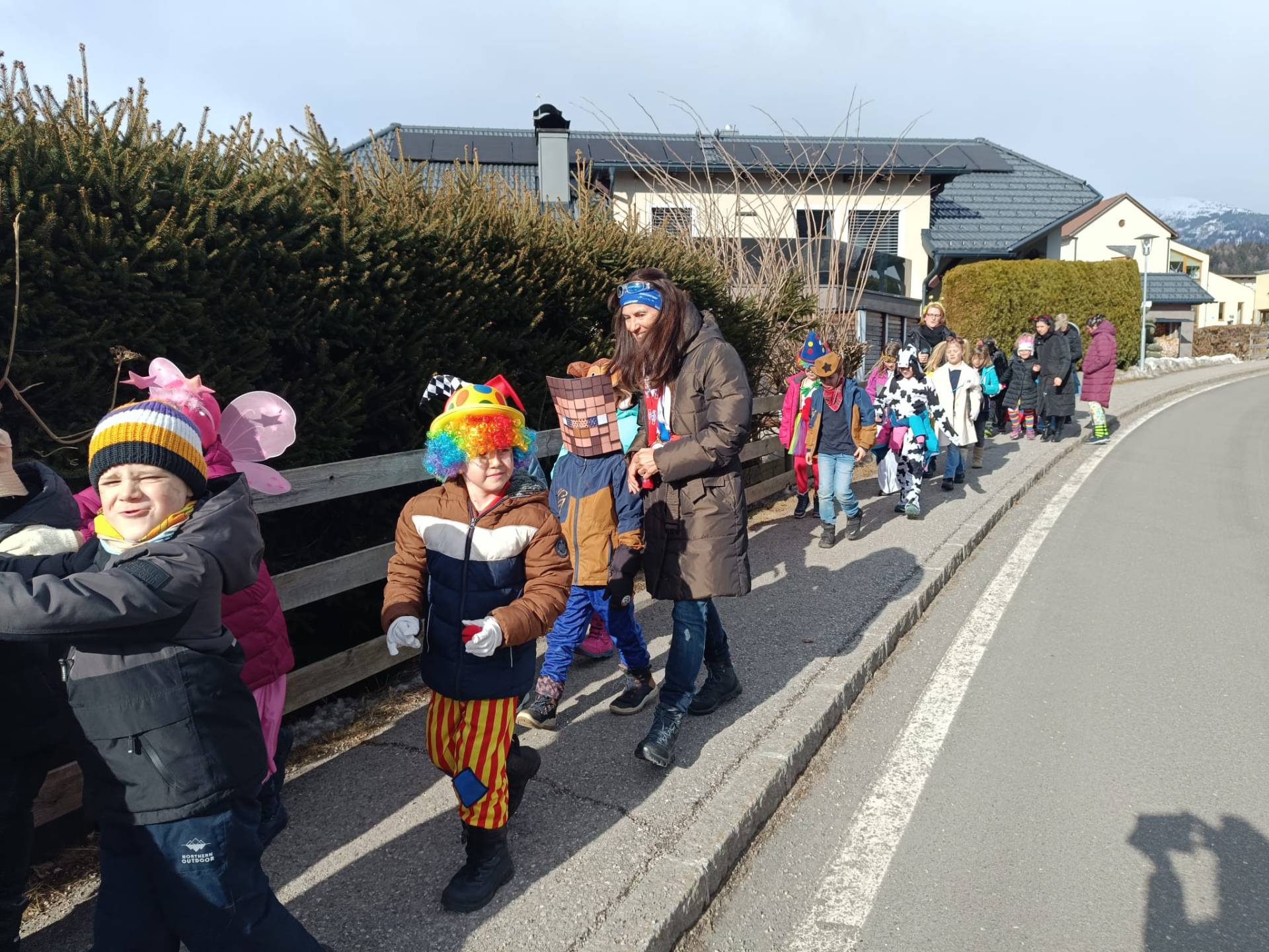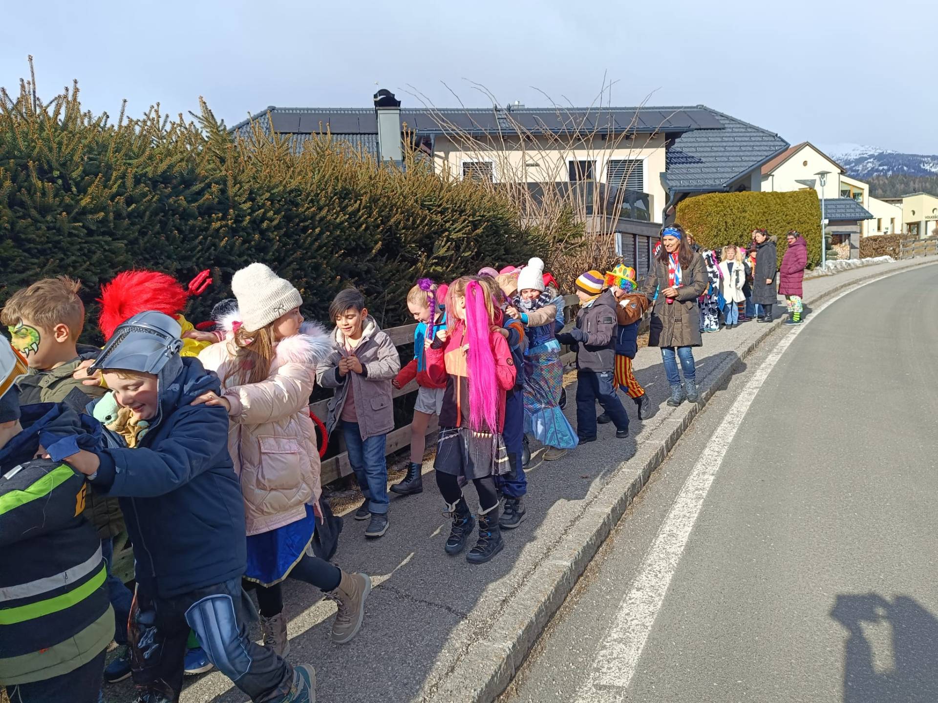 Unter diesem fröhlichen Motto zogen die Kinder der VS Treffling am Faschingsdienstag bunt verkleidet und bestens gelaunt durchs Dorf. Mit einer schwungvollen Polonaise und lustiger Musik sorgten sie überall für gute Stimmung.