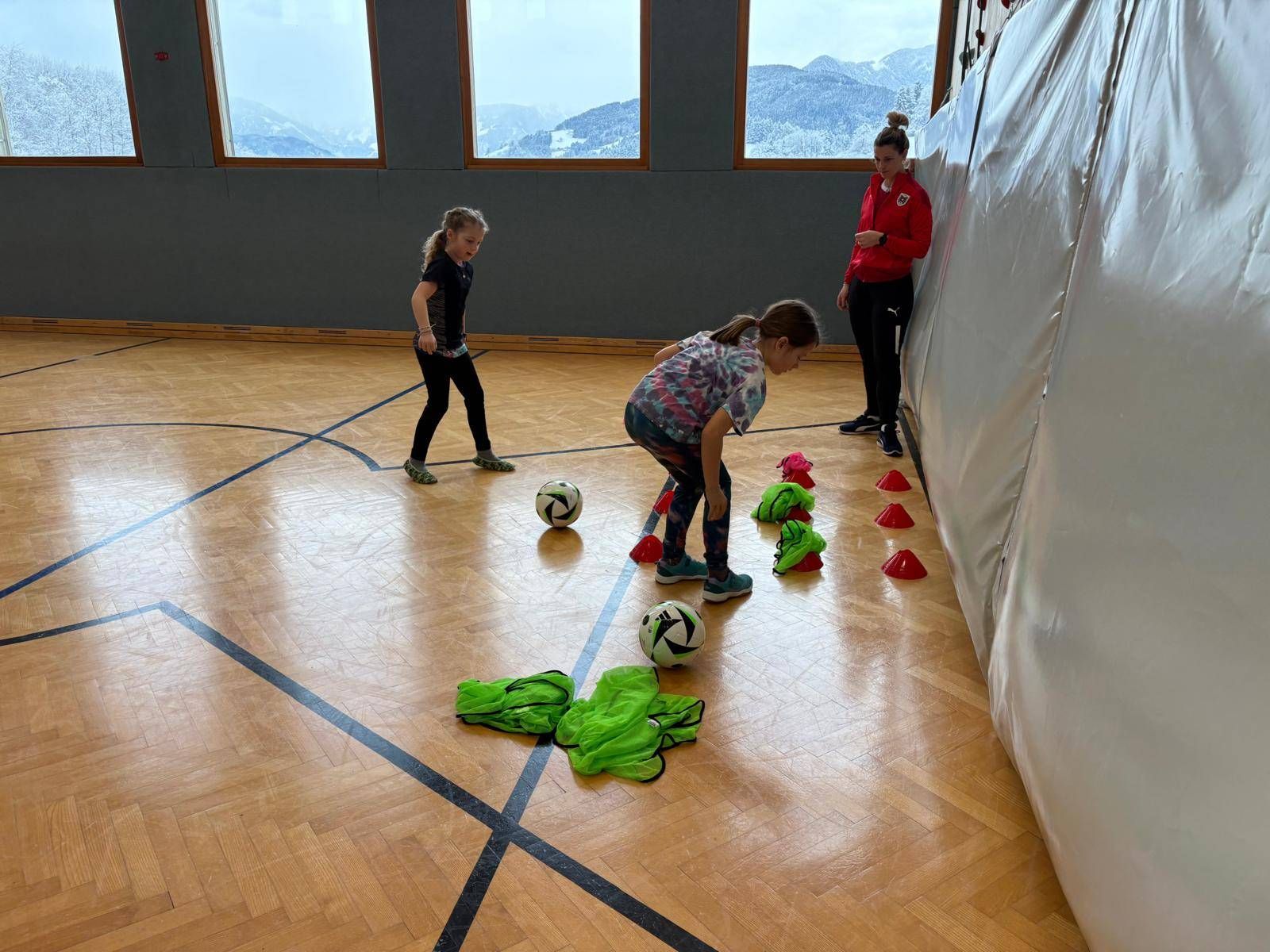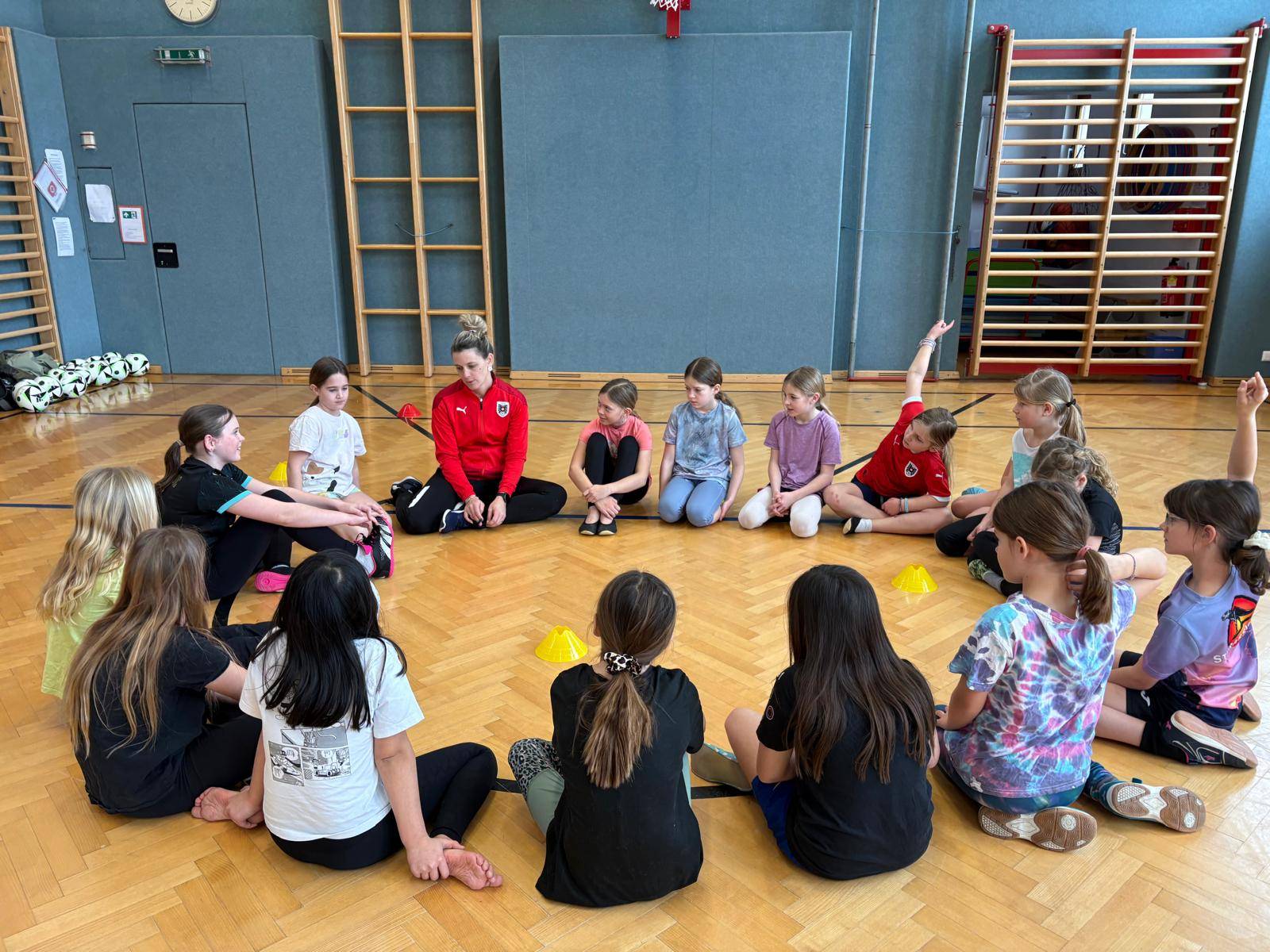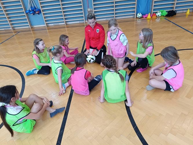 Die Mädchen der GST 1 und GST 2 haben heute im Rahmen des ÖFB-Projekts „Fußball für Mädchen – TWOgether: Schule und Verein“ eine Einheit pro Grundstufe an unserer Volksschule absolviert. Dieses bundesweite Projekt des Österreichischen Fußball-Bunds (ÖFB) und des Bundesministeriums verbindet Schulen und Vereine, um mehr Mädchen für den Fußball zu begeistern. „TWOgether“ schlägt die Brücke zwischen Schule und Verein, um Mädchen ab 5 Jahren langfristig an den Mannschaftssport zu binden – es startete 2025 und läuft bis 2028, mit Koordinatorinnen vor Ort, die Trainingseinheiten und Materialien anbieten.