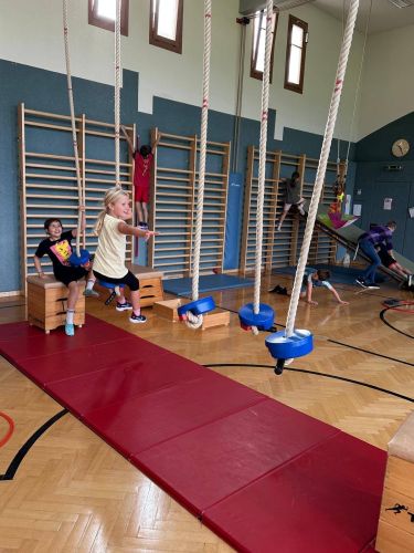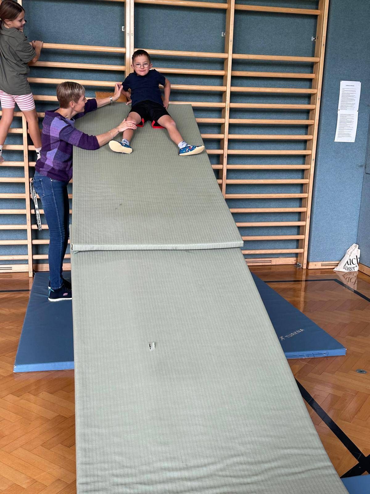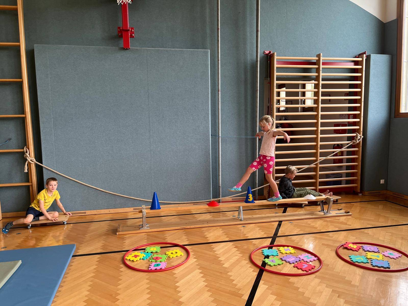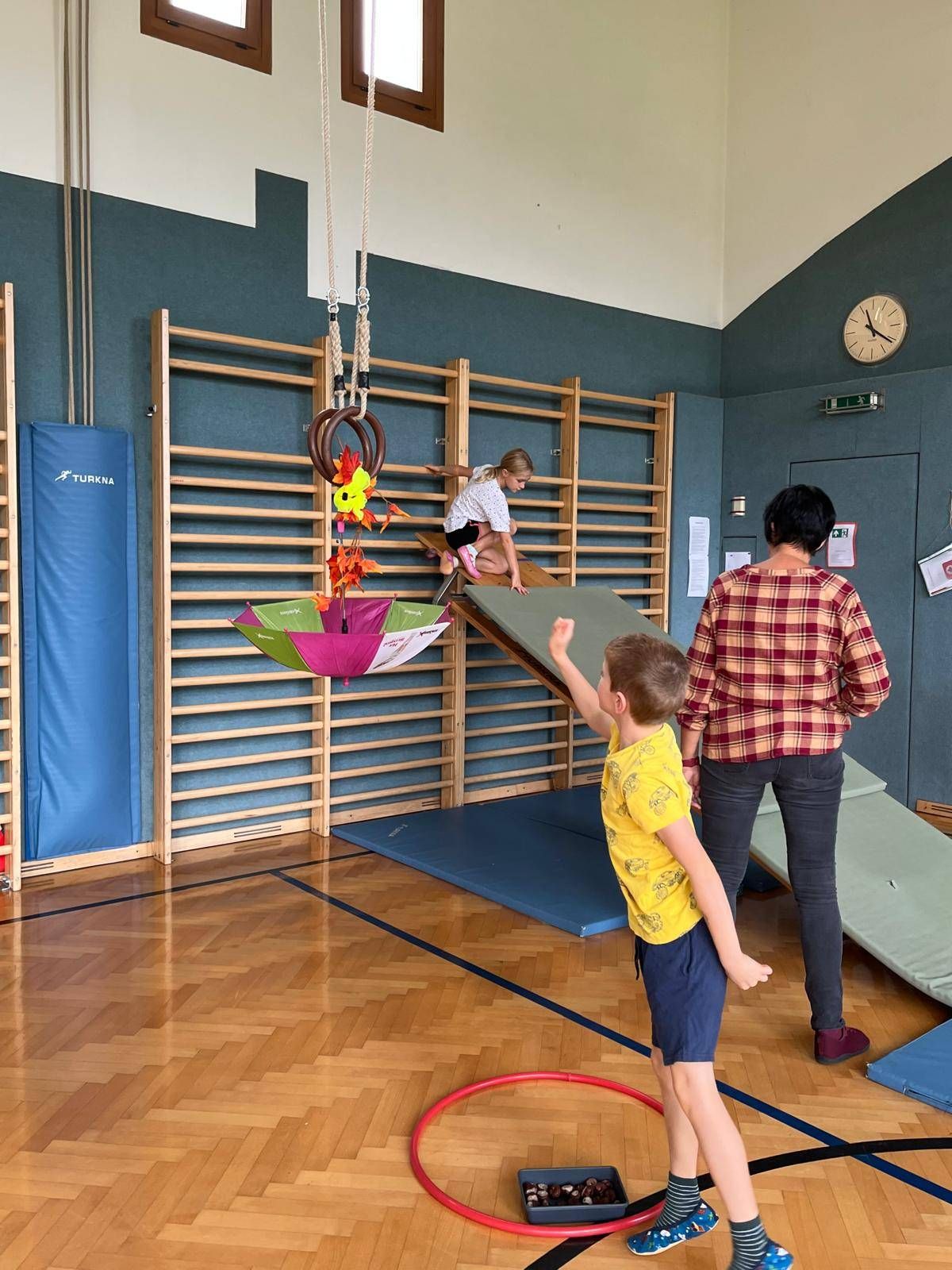 Die Bewegungslandschaft bot nicht nur sportliche Herausforderungen, sondern auch reichlich Raum für Kreativität und Selbstbestimmung. Innerhalb der Stationen konnten die Mädchen und Buben selbst entscheiden, wie und in welchem Tempo sie die Aufgaben meistern. Dabei wurden zentrale Fähigkeiten wie Koordination, Gleichgewicht, Kraft und Ausdauer in spielerischer Form trainiert.