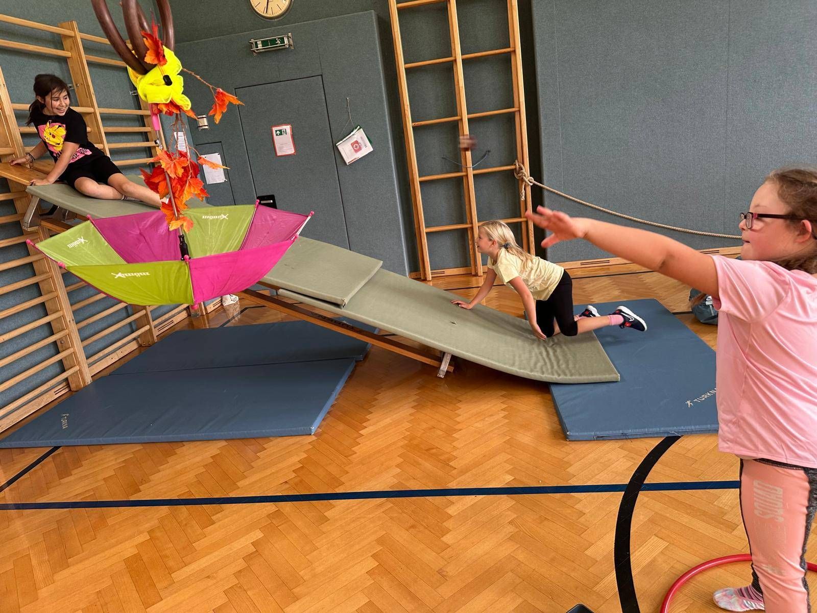 Die Volksschule Treffling hat ihren Turnsaal in eine fantasievolle Herbst-Bewegungslandschaft verwandelt. Die Kinder tauchten in eine bunte Welt voller Bewegung, Spiel und Abenteuer ein, bei der Bewegung, Sinneserfahrung und Kreativität im Mittelpunkt standen.