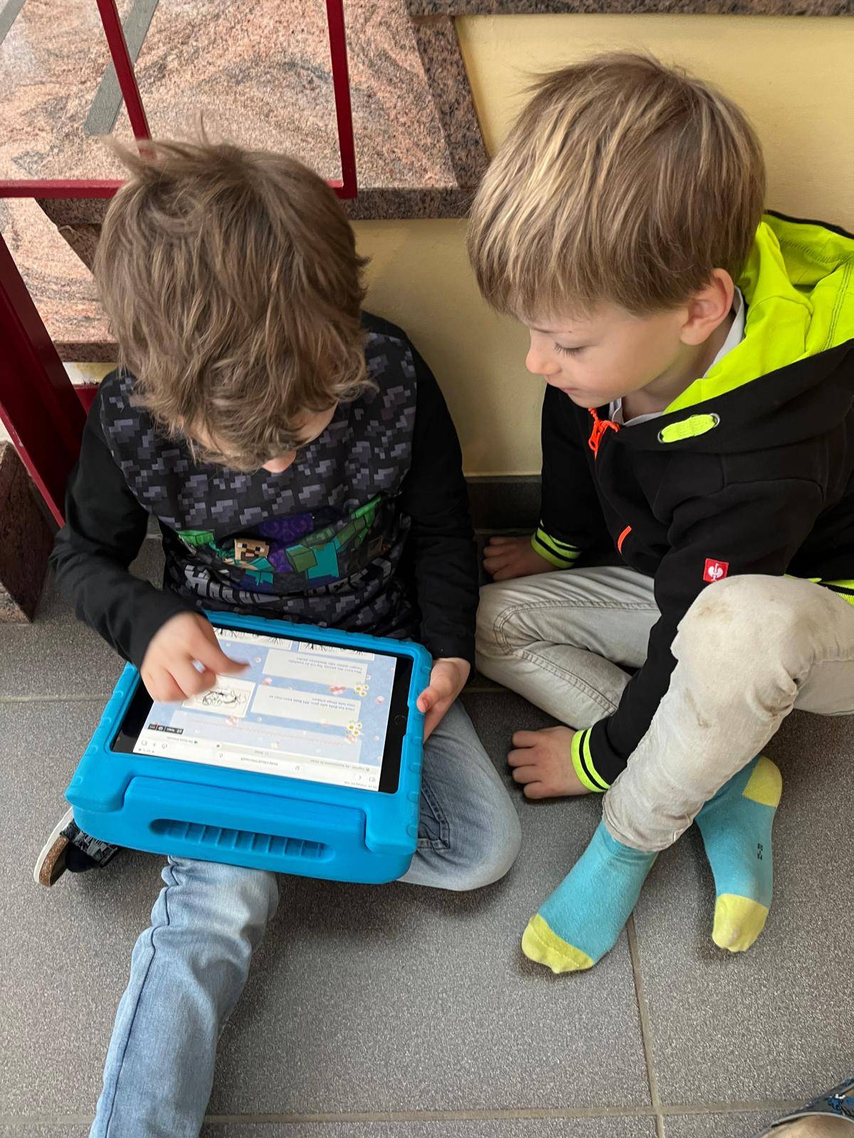 Die Schüler der 1. und 2. Klassen erlebten gemeinsam eine spannende Lesestunde. Auf dem iPad, mit einer in Microsoft Sway erstellten Geschichte über Freundschaft, lasen zuerst die Großen den Kleinen vor. Anschließend hörten und lasen alle gemeinsam.