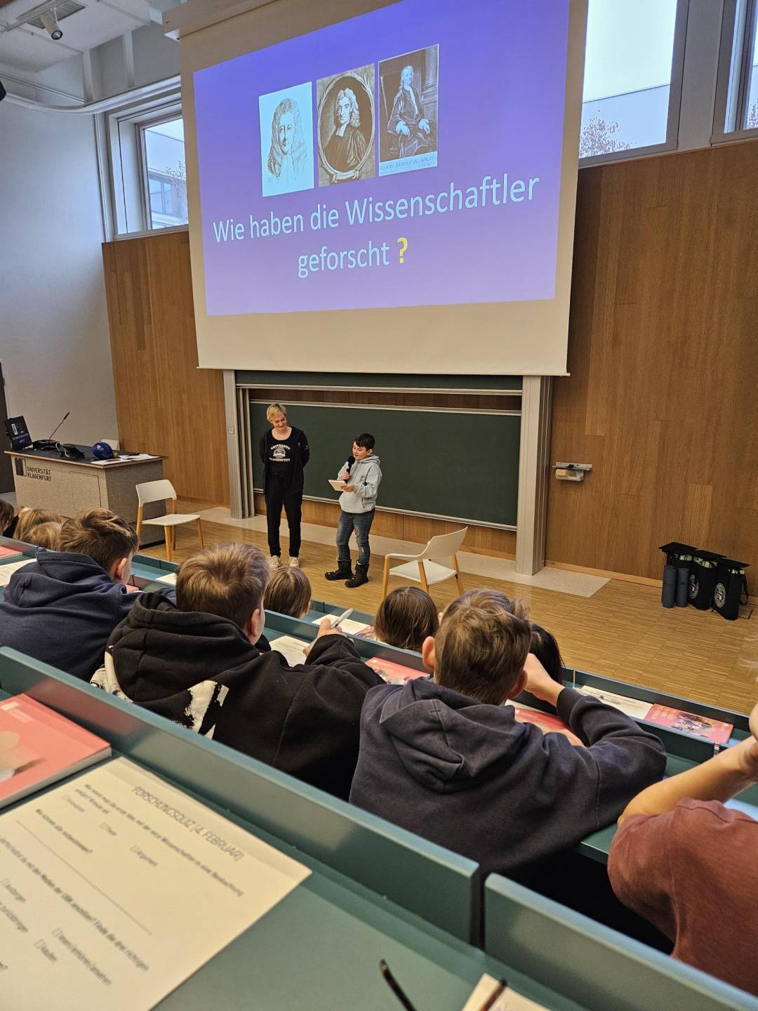 Die Kinder dachten darüber nach, wie Forschen funktioniert, warum genaues Beobachten so wichtig ist und wodurch sich Wissen vom Glauben unterscheidet. Anhand der Geschichte von Isaac Newton lernten sie, dass Wissen sich immer weiterentwickelt und nie ganz endgültig ist.