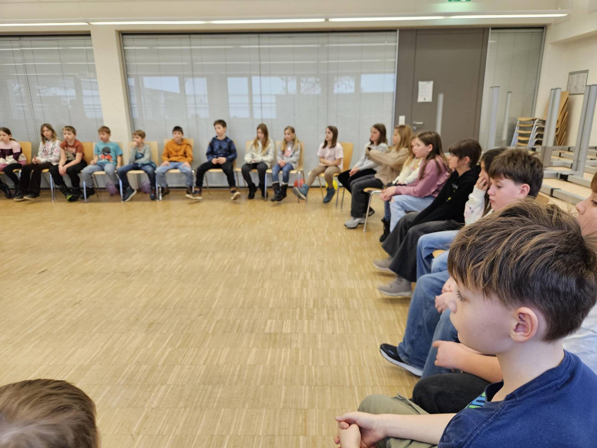Beim philosophischen Workshop ging es um Mitbestimmung, faires Miteinander und darum, wie auch leise und schüchterne Kinder zu Wort kommen können. Mithilfe von Kinderbüchern setzten sich die Schüler:innen mit Fragen zu Klassengemeinschaft, Streit, Versöhnung und Ausgrenzung auseinander.