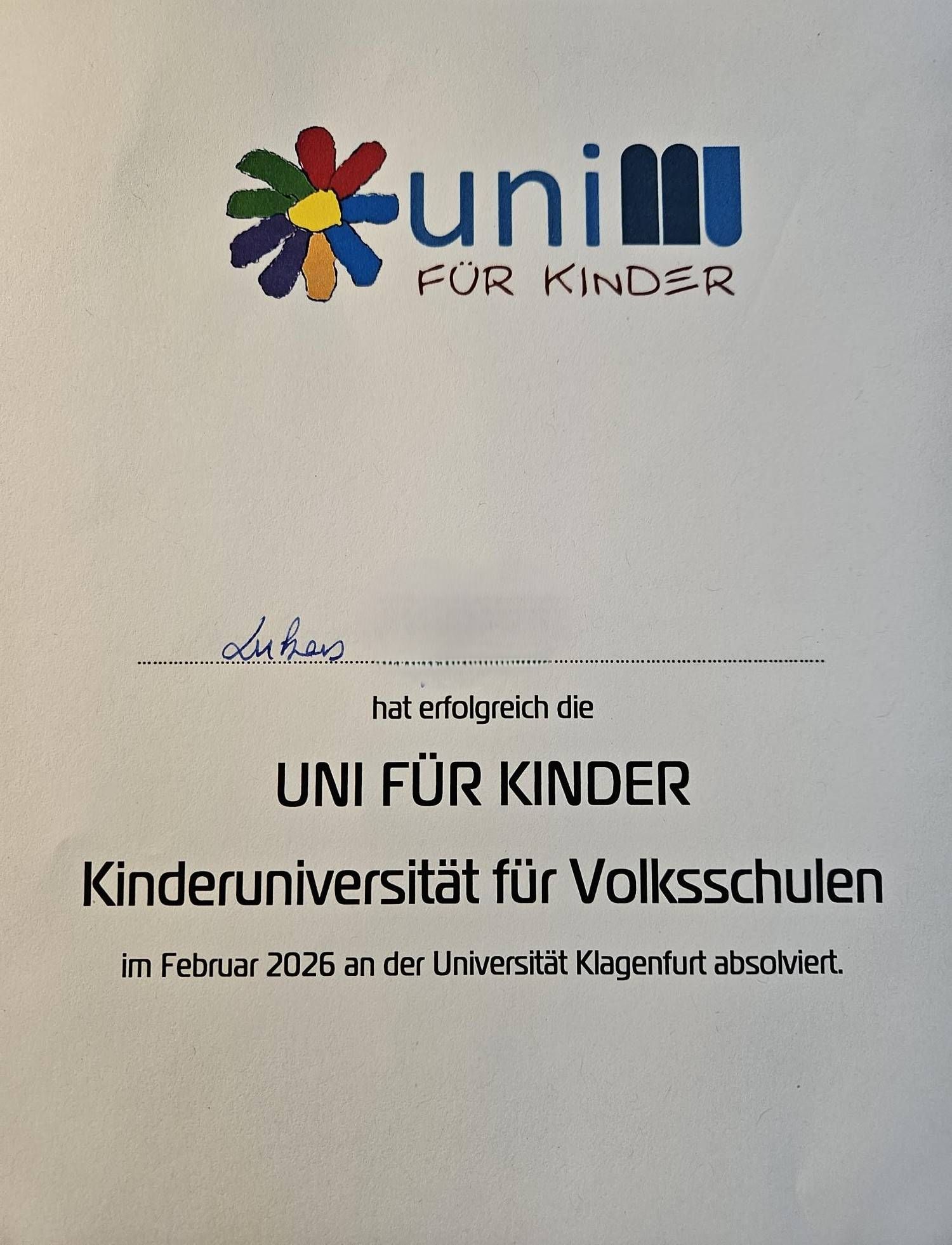Die Kinder der 3. und 4. Klassen nahmen am Mittwoch, 4. Februar 2026, an der „UNI für Kinder“ an der Universität Klagenfurt teil.