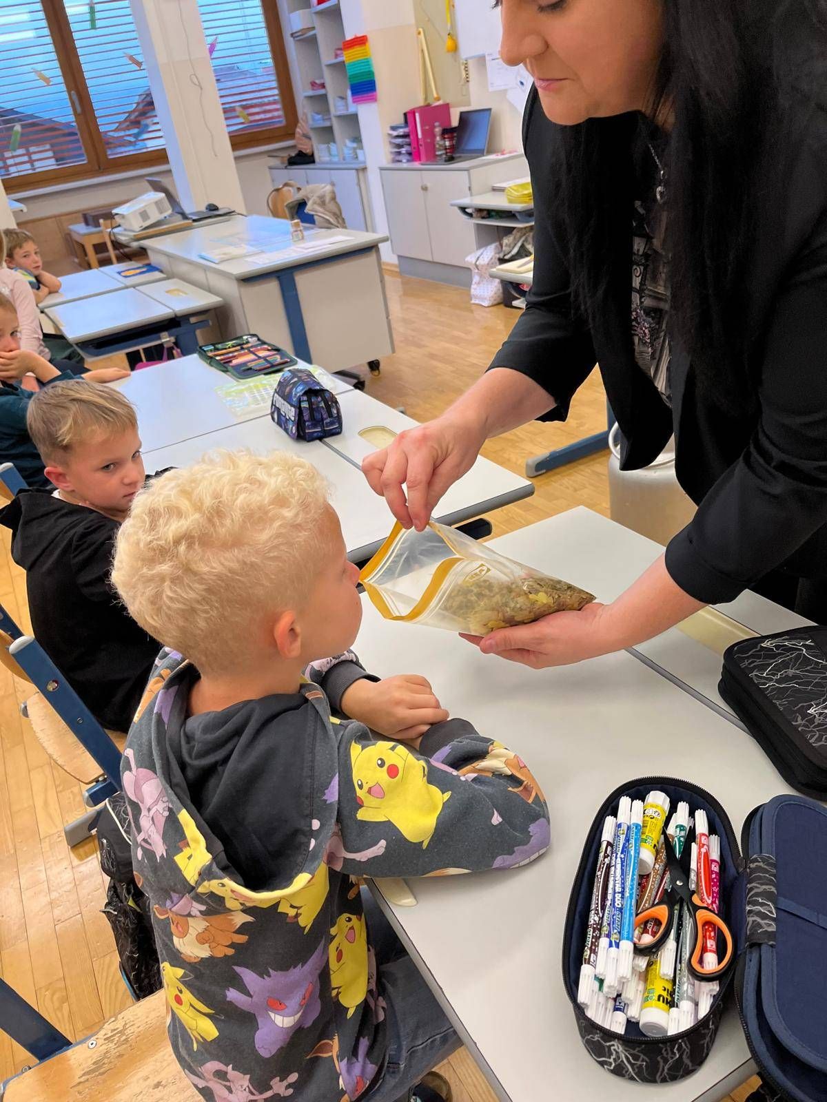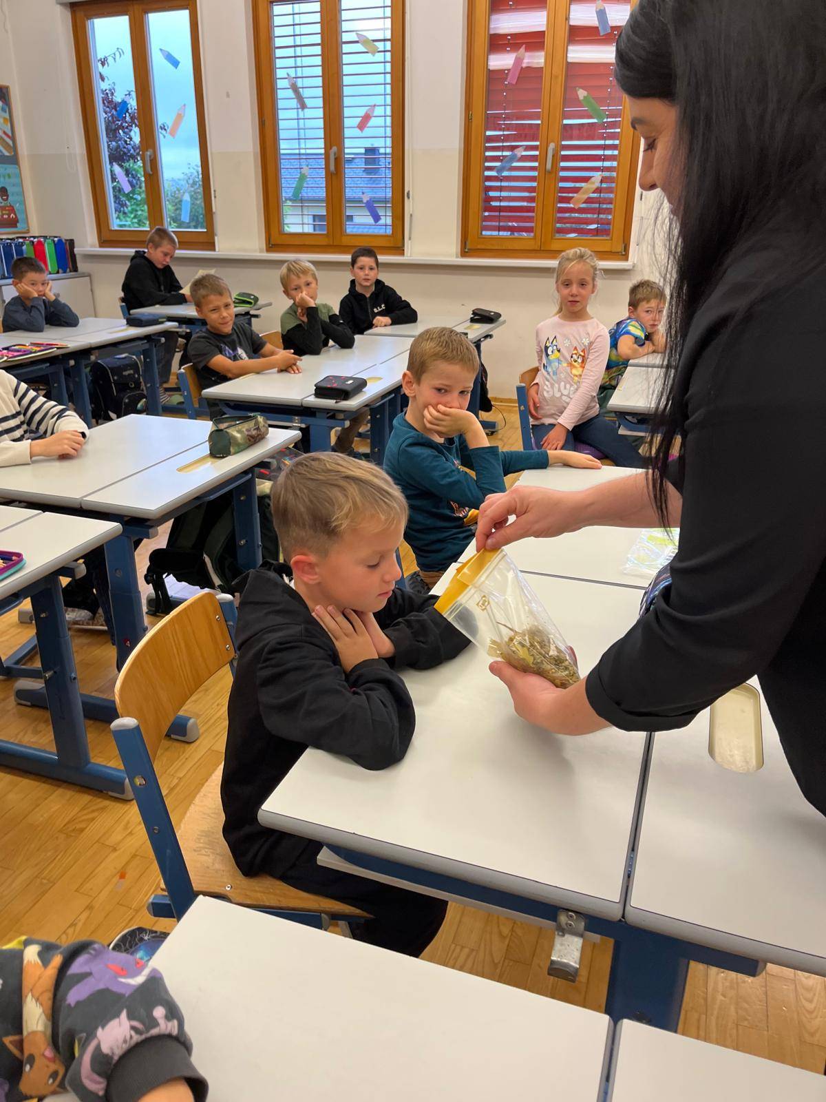 Frau Maria Krabath und Frau Bettina Goller brachten den Kindern auf lebendige Weise näher, wie vielfältig und wertvoll die Landwirtschaft ist. Anhand vieler Bilder von ihren Tieren erklärten sie, wie der Alltag auf einem Bauernhof aussieht. Gemeinsam erfuhren die Kinder, was Bäuerinnen und Bauern alles leisten und welche Aufgaben rund um den Hof anfallen. Besonders spannend war die Geruchsprobe: Heu, Silage und Mais regten nicht nur den Geruchssinn an, sondern auch die Neugier der Kinder.