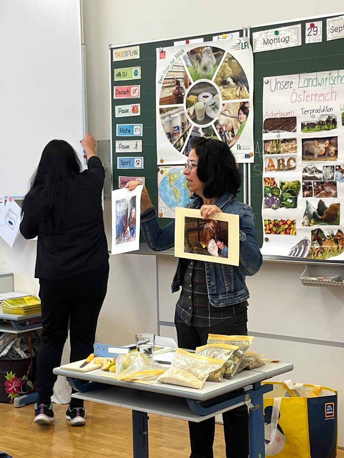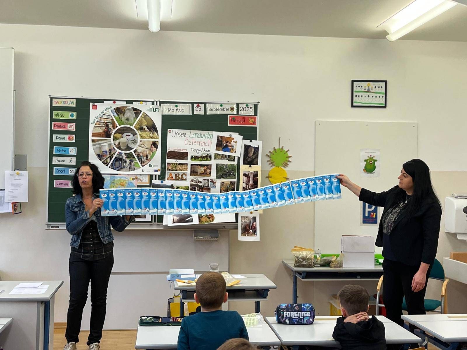 Im Rahmen des WKO-Projekts „Aktionstag der Bäuerinnen anlässlich des Welternährungstages“ besuchten am Montag, 29.09.2025, zwei ortsansässige Bäuerinnen die 2. Klasse und gaben den Kindern einen spannenden Einblick in das vielseitige Leben auf einem Bauernhof.