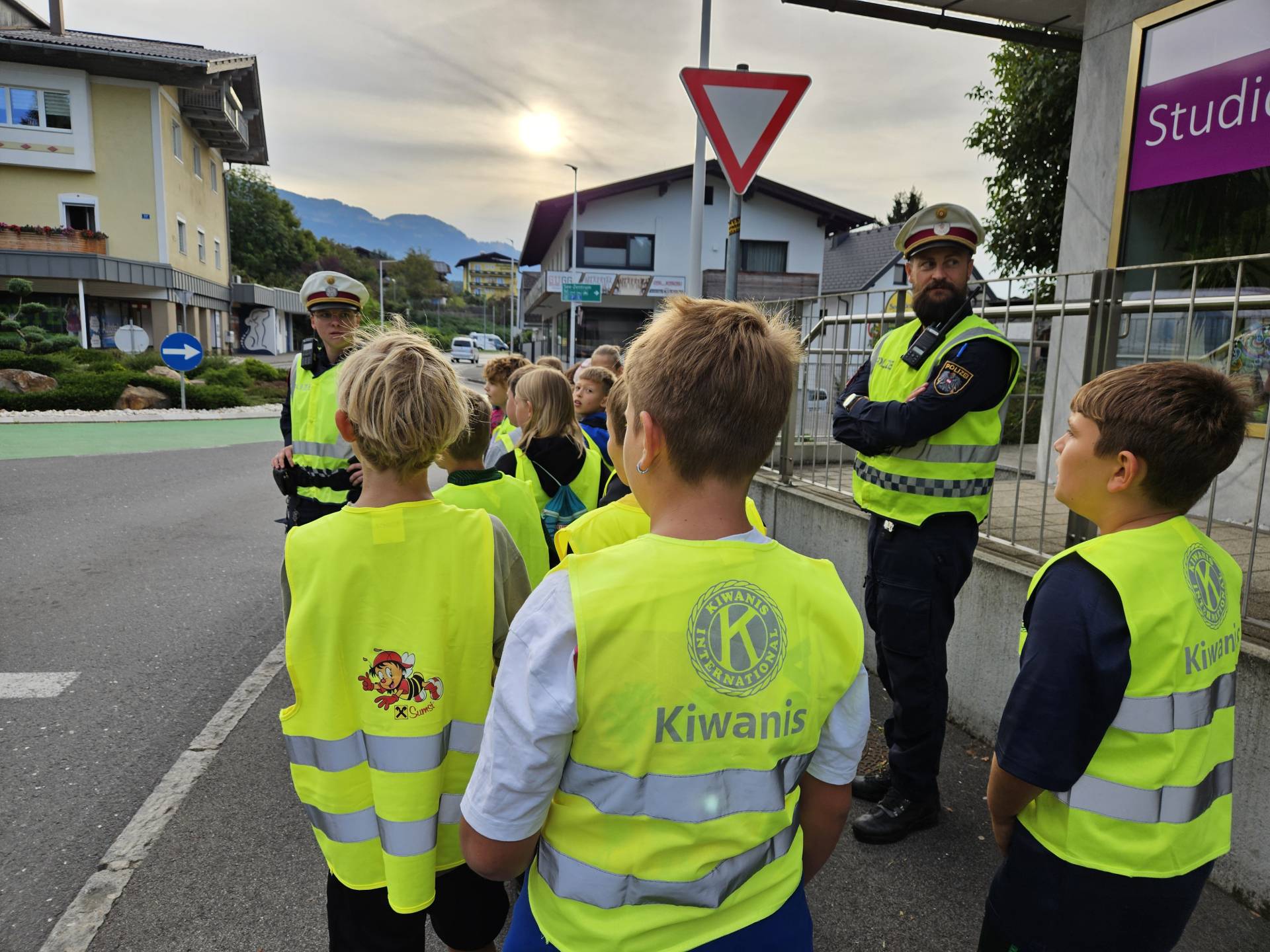 Im Mittelpunkt standen das korrekte Linksabbiegen, das richtige Verhalten beim Einfahren und Ausfahren in einen Kreisverkehr sowie das sichere Anhalten und Weiterfahren bei einer Stopp-Tafel. Ebenfalls erklärt wurde die Bedeutung des Verkehrszeichens „Vorrang geben“ und wie sich Kinder in dieser Situation richtig verhalten.