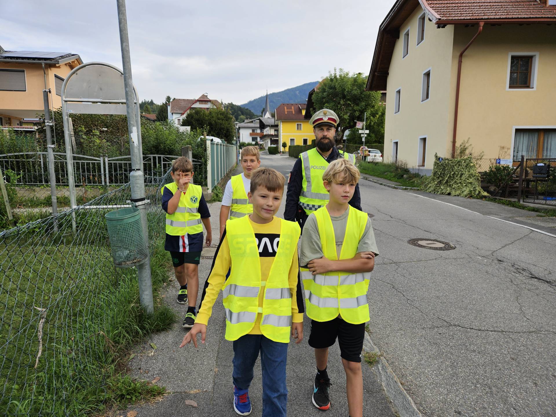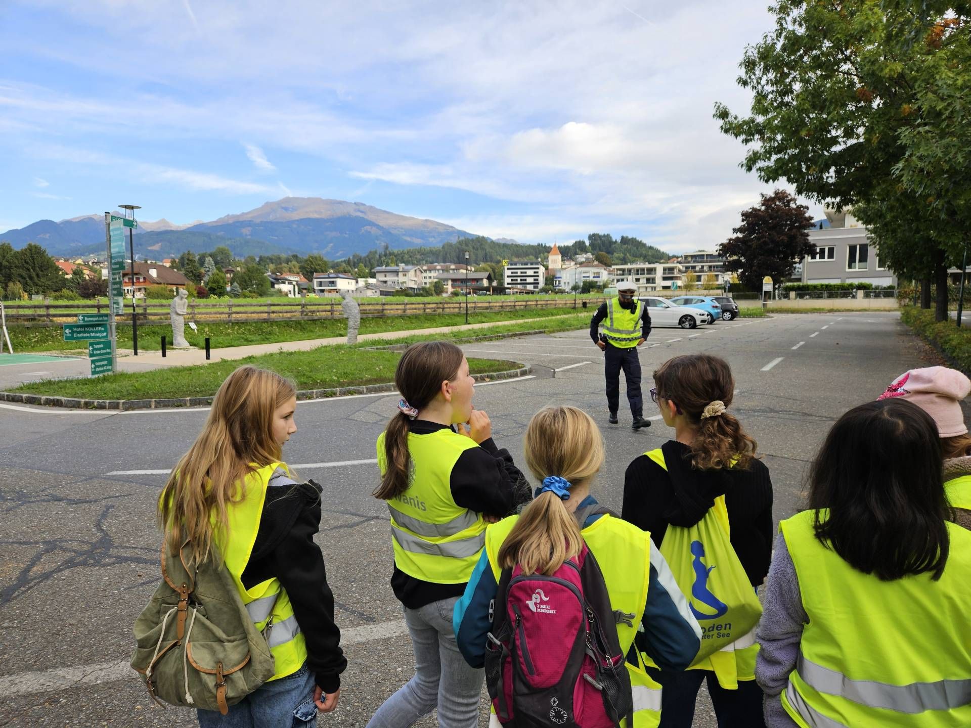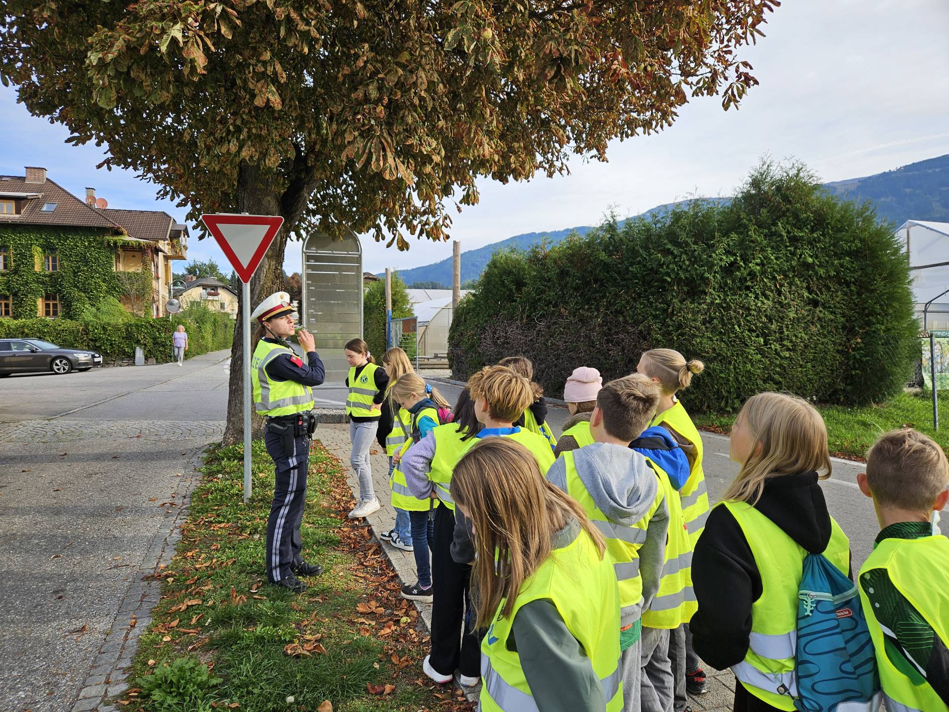 Begleitet von Frau ASP Isabella Unterkofler und Herrn AI Andreas Penker von der Polizeistation Seeboden erkundeten die Schüler und Schülerinnen der 4. Klasse Treffling die Prüfungsstrecke.